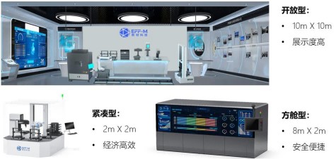 特点 (1)正向研发:将数智研发方法和材料正向开发经验固化在智能实验室,解决专业知识和人才缺乏的痛点 (2)高通量实验硬件平台:通用平台,支持多材料、多工艺开发,实现高效高质量数据生产 (3)“AI”软件平台:自主决策,快速迭代,运用专业大模型模拟仿真,逐步引导用户使用;也可进行逆向设计 (4)三种产品形态供选择:根据用户使用场景和需求,目前有三种系列产品,即开放型(10m×10m,展示度高)、紧凑型(2m×2m,经济高效)、方舱型(8m×2m,安全便捷)